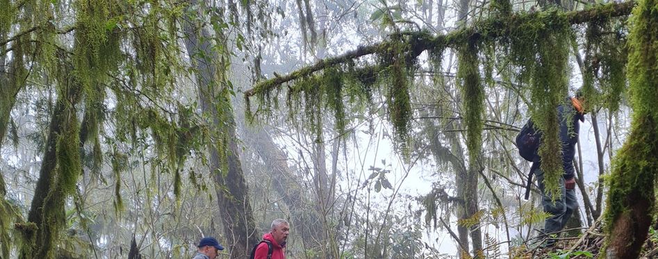 Hiking verdant green trails in the sub-tropical Argentina Cloud Forest in Jujuy: an oasis of plants and birdlife.