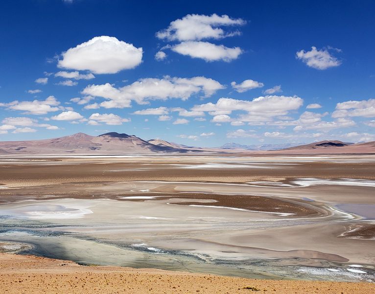 The following day, we head west through the panoramic landscape of the Olaroz and Cauchari salt flats to the Paso de Jama on the Chilean frontier. After crossing the border, we reach the Salar de Tala with its blue-black lagoon, and the giant volcanic ignimbrite blocks in the Reserva Natural de los Flamencos, known as the Monjes de Pacana or Moai of Tara because of their similarity to the famous standing stones of Easter Island. Finally, a breath-taking descent into San Pedro de Atacama, jealously guarded by the majestic volcano of Licancabur.